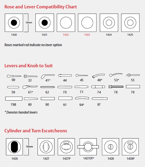 Plates are not handed; lever may be reversed by removing stop screw, except those denoted by *. Specify the handing of those levers when ordering.