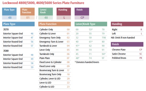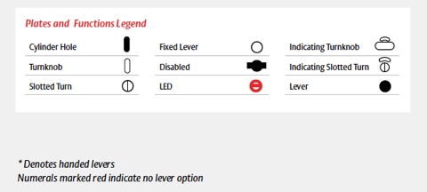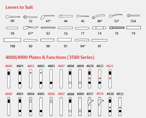 - Plates are not handed; lever may be reversed, except those denoted by *. Specify the handing of those levers when ordering.